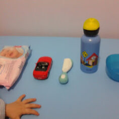 Bir beyaz kartonu 4 e böldük; hangi odalar olduğunu söyledim Minik adamıma tek tek..Karışık vaziyetteki eşyaları yerleştirdi MİNİK’im yerlerine…