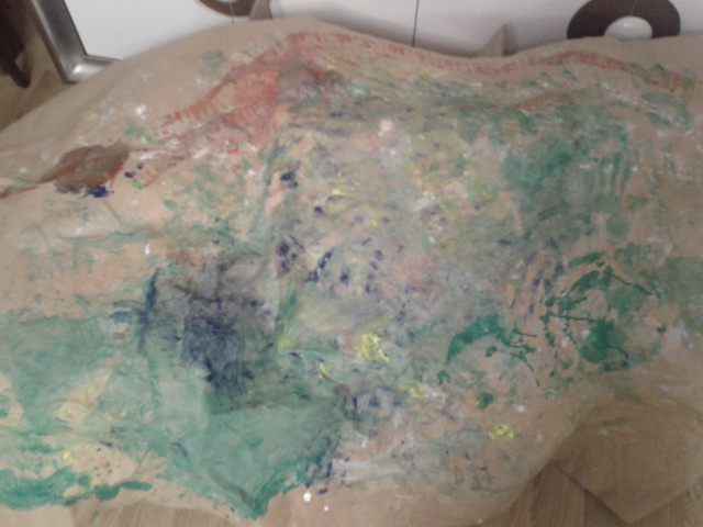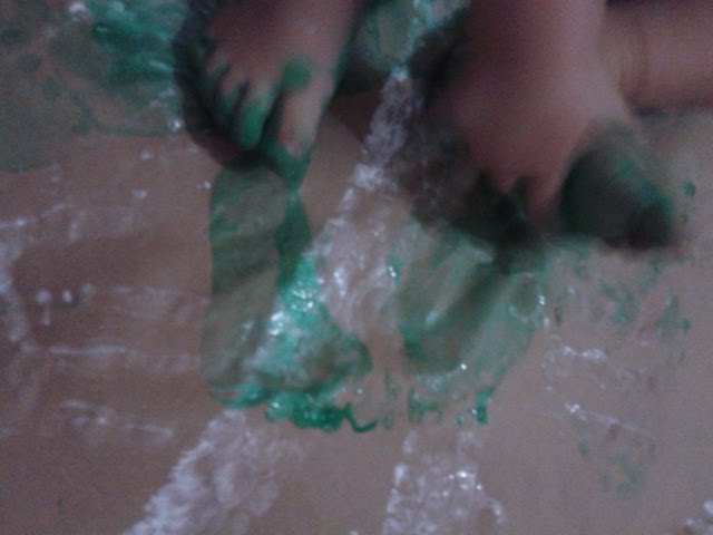 Derken ayak baskısının boyutu değişti.. Elller kollar da daldı boyaların içine… Geçtiğimiz günlerde kanal gezerken Yetenek Sizsiniz programında bir ressama denk gelmiştim..Ayaklarıyla resim yapıyordu; ‘Bunu dünyada bir tek ben yapıyorum !’ demişti..KÜLLİYEN YALAN :)) İŞTE BİZ DE YAPIYORUZZZZZZ :)))