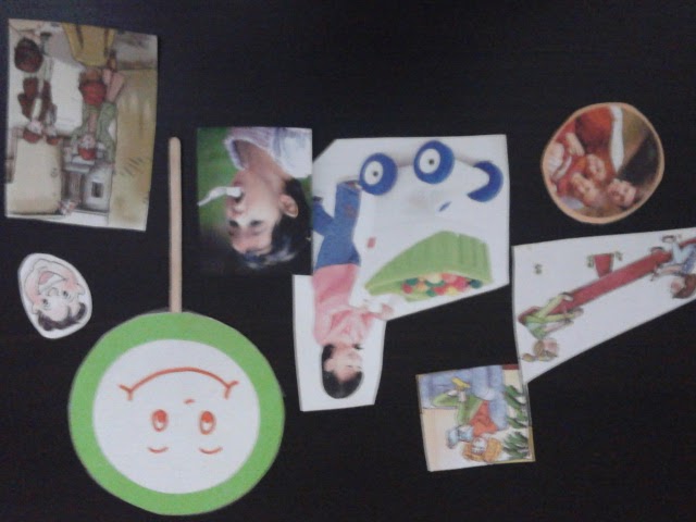 Ve elbette ,fırsattan istifade; duygu durumları eşleştirme oyunu için hemen işe koyuldum,işime yarayabilecek resimleri tarayarak,kestim kitaplardan..Koydum Minik’in önüne..