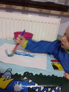 O dokunarak, kabartmaları hissederek ister fırça ister elleriyle boyuyor 😉