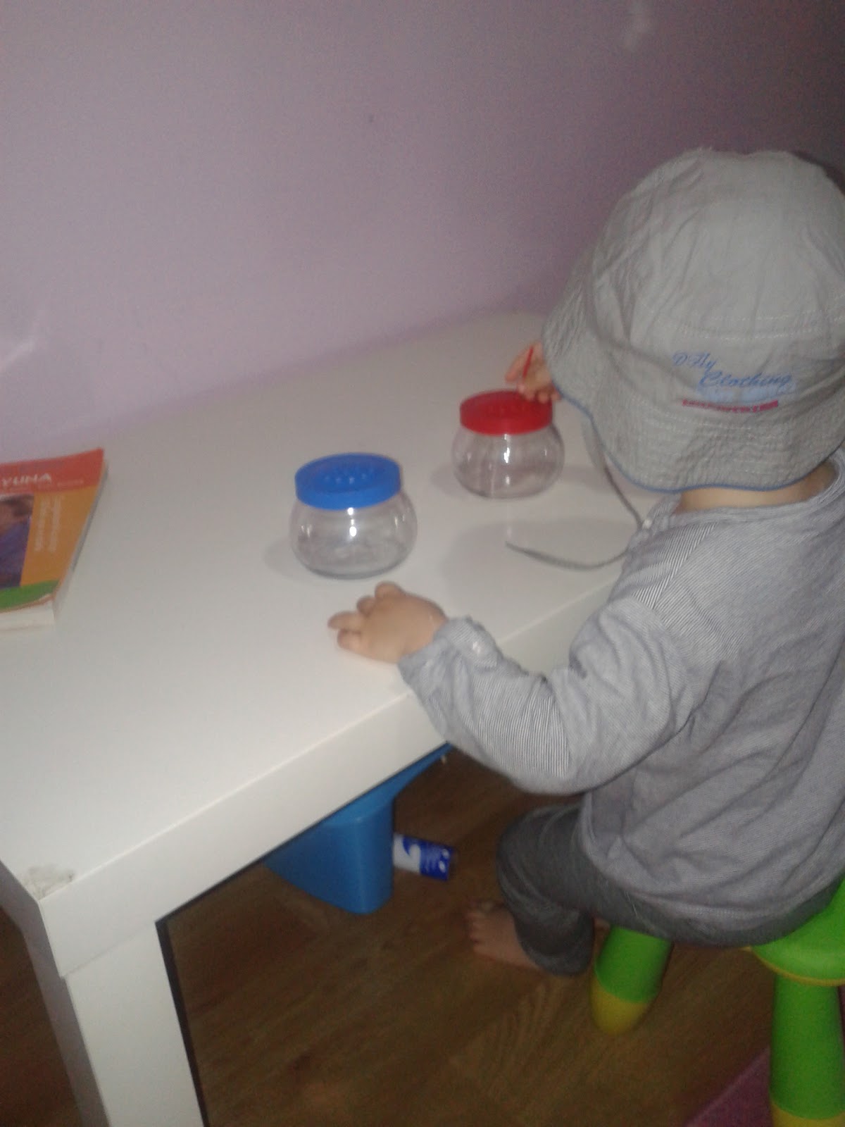 Öncelikle 2 renkle başladık. Geçtiğimiz günlerde oynadığımız renk oyununda da kırmızı ve maviyi kullanmıştık ,onlarla devam ettik.