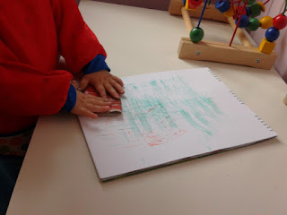 Rulodaki ipleri beraber boyadık,ruloyu ileri geri yuvarlamak Minik efendiye kaldı 😉