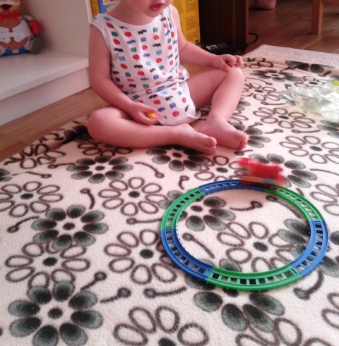Treni kurdurup kurdurup ,karşısında oturarak seyreyliyor şu sıralar..O kadar keyifli ve ilgili ki,İKEAdaki ,şu klasikleşmiş AHŞAP TREN Setlerinden almayı düşünüyorum .. (kendi yürütebilmekten daha çok hoşlanır belki 😉
